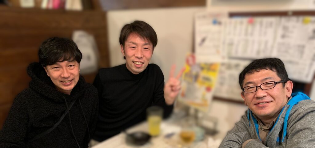 左前方:柳原さん、左後方:大矢、右:町野さん